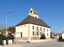 Treibende Kraft für einen doppelt so großen Neubau war 1766 Pfarrer Jacob Christoph Friesenegger, der 1759 hier noch J.P. Hebels Eltern traute und auch der damalige Vogt Johann Jacob Schneider. Begünstigt wurde der Neubau auch durch den kirchenbaufreudigen Markgraf Carl Friedrich. 1768 war das neue Kirchenschiff fertig. Ihren Beitrag leistete die Gemeinde durch ihren Auftrag an Johannes Scherren aus Steinen, der für die Ausschmückung der Empore 33 Holztafeln mit Motiven aus dem Alten und Neuen Testament bemalte.