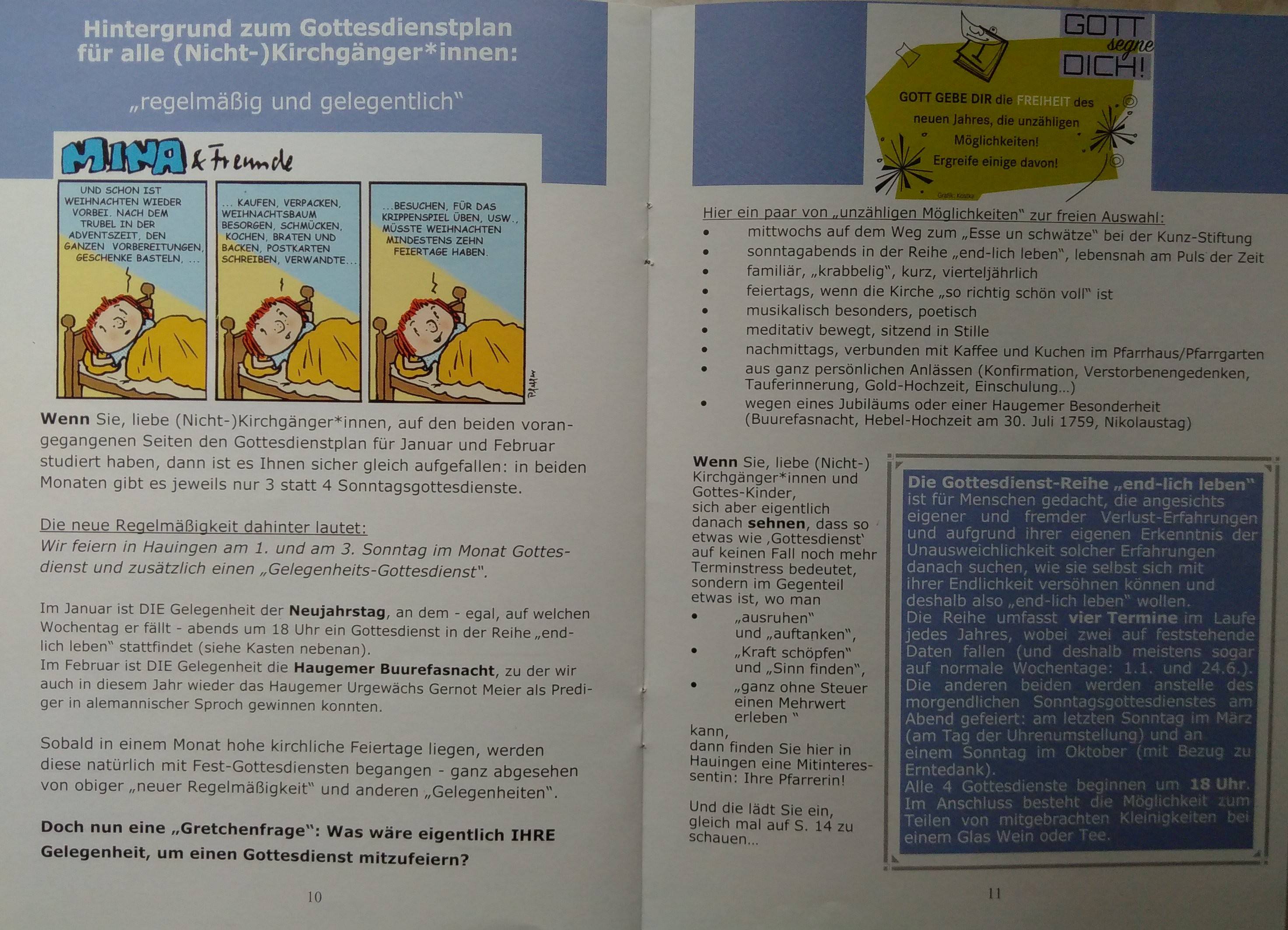 In Hauingen feiern wir "in der Regel" am 1. und 3. Sonntag im Monat Gottesdienst und zusätzlich einen "Gelegenheits-Gottesdienst".